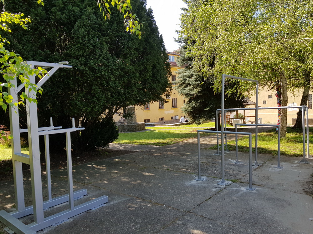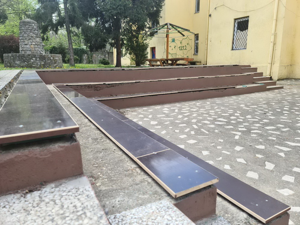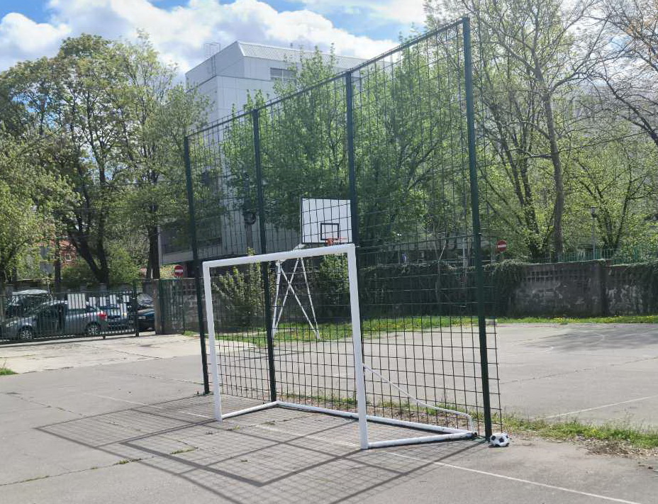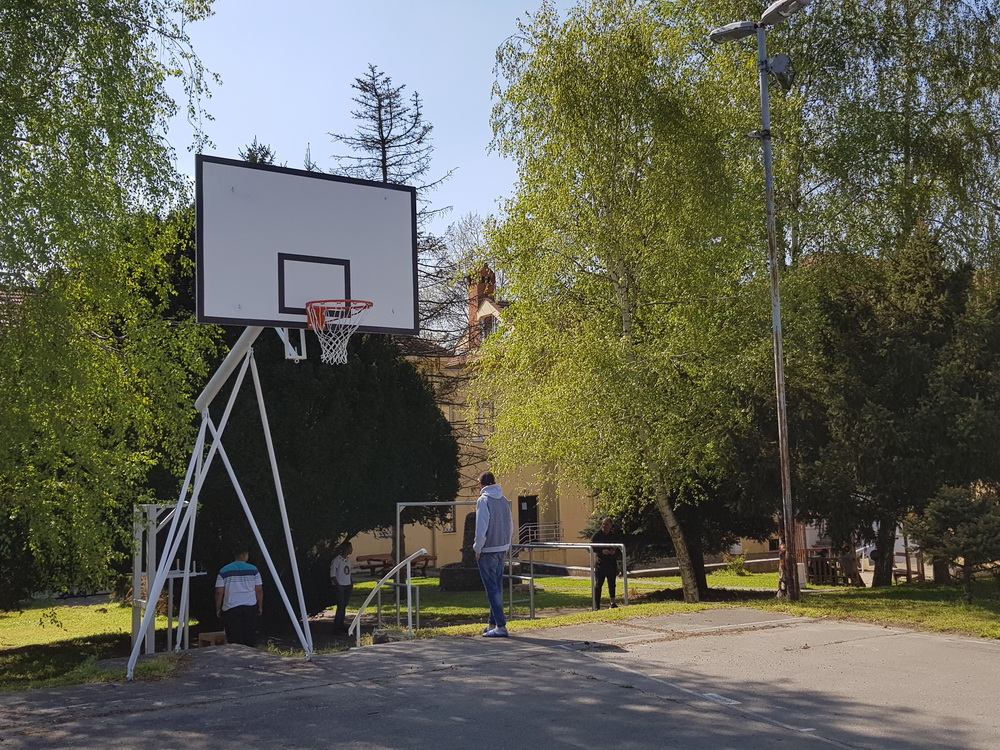 Прво је уређен амфитеатар на отвореном, промењене кошаркашке табле и замењена заштитна метална ограда иза голова за мали фудбал. Додали смо справе за спорт и рекреацију, офарбали жардињере и у њима посадили цвеће и офарбали металне конструције за кошаркашке табле.